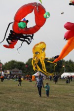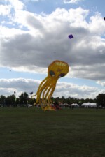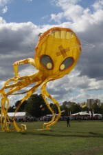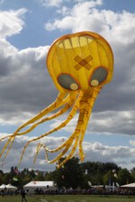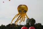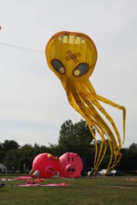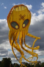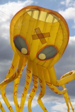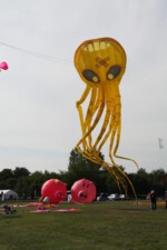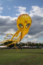 Der gelbe Krake war der erste Großdrachen des Vereins. 😮 Sie (Susi) galt für einige Zeit als Maskottchen und wurde schließlich vom orangenen Kraken als solches abgelöst. Leider verletzte sich Susi und dieser Schaden am Tuch sorgte dafür, dass dieser Drachen aber über einige Zeit in den dunklen Ecken unseres Funduses verschwand und fast in Vergessenheit geriet. 😯 Einige Mitglieder wollten das nicht akzeptieren. Mit der Bereitschaft einige Zeit und Nähgarn zu investieren konnte der Krake zum 2015’er Rodgauer Familiendrachenfest, mit einem Riesenpflaster, schließlich erneut in den Himmel aufsteigen. 😎