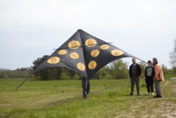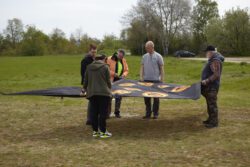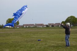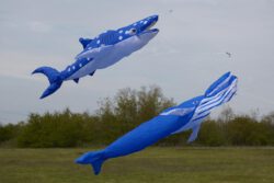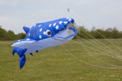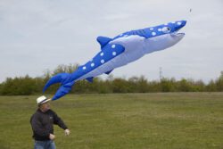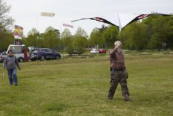 Zum traditionellen 1.Mai-Fliegen trafen sich einige Drachenflieger auf der Wiese bei leichtem Wind von 1-2 BFT. Wie immer lag die Priorität auf einem Beisammensein, aber es gab auch eine Premiere: Wir behaupten, dass Jürgen der erste Drachenpilot heute im Rhein-Main-Gebiet war, der seinen frisch genähten Walhai nach Plänen von Peter Lynn an die Luft gebracht hat. Viele weitere in Bau befindliche Walhaie werden folgen…