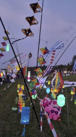 Ein Dank an die Orga und den Segelflugverein für die tolle Veranstaltung. Natürlich sind auch ein paar Drachen geflogen und die Eule von Marcel Kramer war wieder ein toller Hingucker. Am Abend gab es auch viele beleuchtete Drachen und Windspiele. Hier passte der Sonnenuntergang perfekt. Vielen Dank für dieses Wochenende !