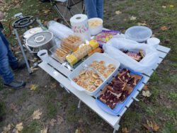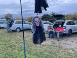 Am Samstag, den 28.10. trafen sich ca. 20 unerschrockene Mitglieder zum gemeinsamen Gruseln auf der Wiese. Für Verpflegung war gesorgt, von der Kürbissuppe über Raclette bis Kinderpunsch und Glühwein. Das Wetter war mal wieder anspruchsvoll, eine Regenfront zog bis 17 Uhr über Rodgau. Danach öffnete sich unser trockenes Zeitfenster bis ca. 21 Uhr.