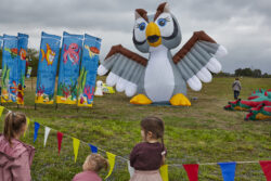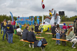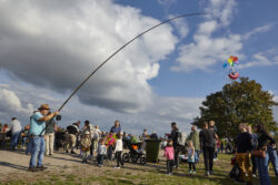 Die Wettervorhersage für das Festwochenende war schwierig. Der Wind blieb in großen Teilen aus, bis auf einmal am Samstag nachmittag der griechische Gott des Windes „Aiolos” ein Einsehen hatte, und den erhofften Wind schickte. So war dieser Nachmittag gerettet. Unser 1. Vorsitzender Jan war diesmal in 2 Sendungen des HR zu sehen ( „Die Ratgeber” und „Hallo Hessen”), und machte Werbung für das Fest. Es zahlte sich aus, denn es kamen sehr viele Besucher und bestaunten die Drachenkreationen und Aktionen. Auch der „Drachenklaus” war wieder mit seiner Drachen-Fähre tätig, und lies Bonbons für die Kinder vom Himmel regnen. Vielen Dank auch an alle Drachenpiloten für ihre Teilnahme, die teils eine weite Anreise hatten. Wir glauben: Es hat allen Spaß gemacht.